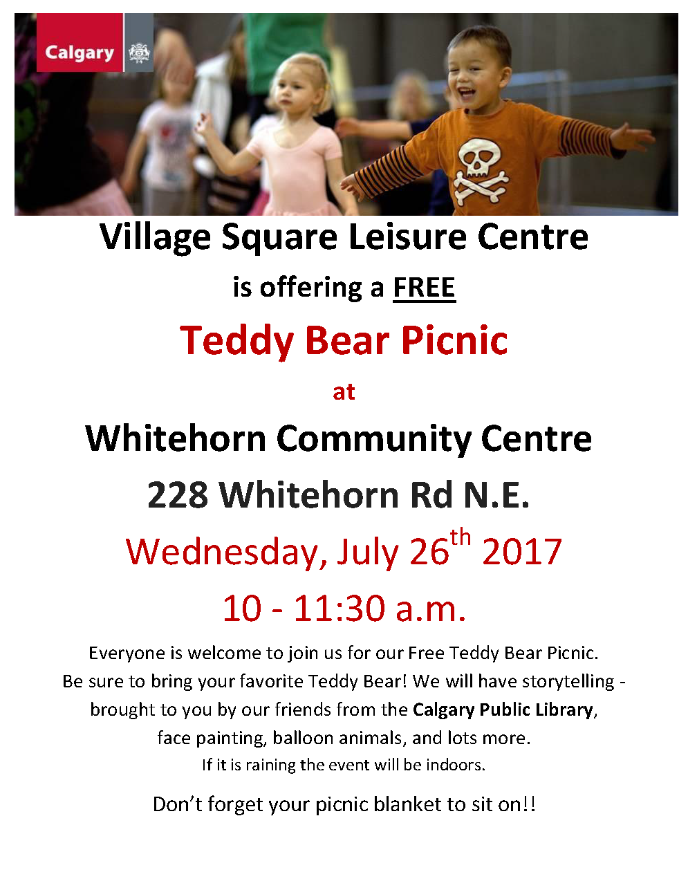 Join our neighbours in Whitehorn for a free Teddy Bear Picnic! Share this: Click to share on X (Opens in new window) X Click to share on Facebook (Opens in new window) Facebook Like Loading... Related